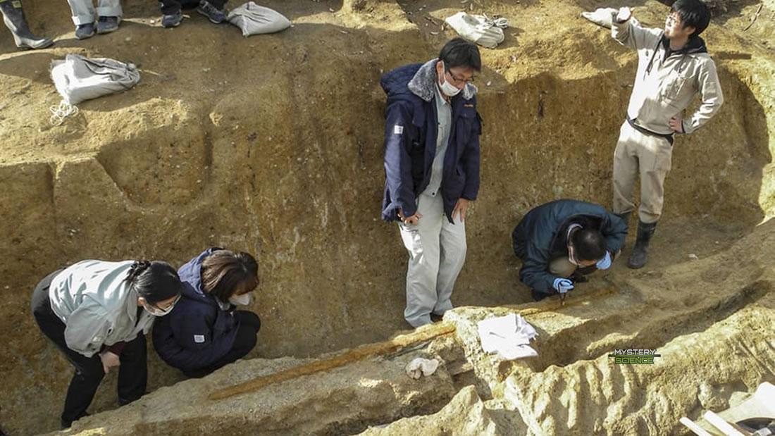 Cuando el equipo de excavación descubrió los objetos, reveló que la longitud de la espada era tan impresionante que inicialmente pensaron que se trataba de varias espadas colocadas de manera longitudinal, dadas las asombrosas dimensiones de la misma.